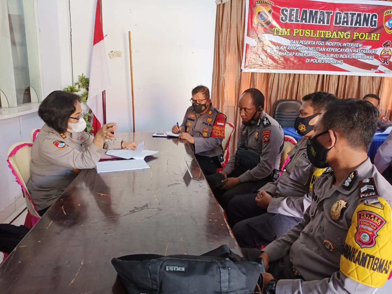 PUSLITBANG POLRI LAKSANAKAN PENELITIAN TINGKAT KEPERCAYAAN MASYARAKAT DI POLRES BOALEMO